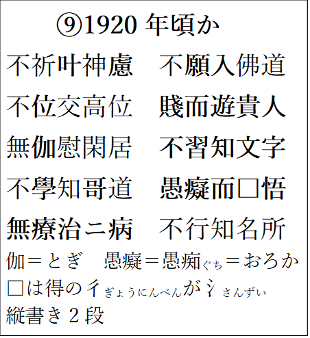 「謡十徳」 2段の縦書きで「而」の字がない。