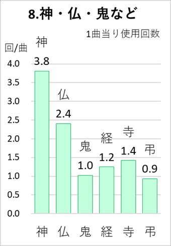 4番=狂物は、全体平均とほぼ同じに神と仏が多く出てきます。