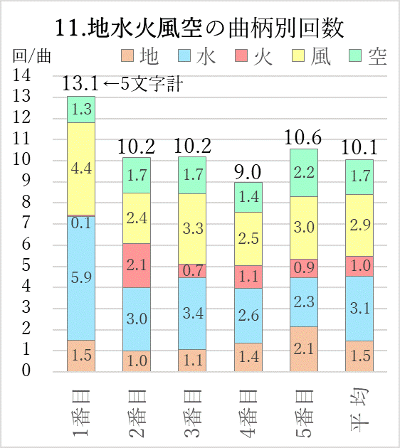 この「地水火風空」の文字を数えた結果が11.のグラフです。