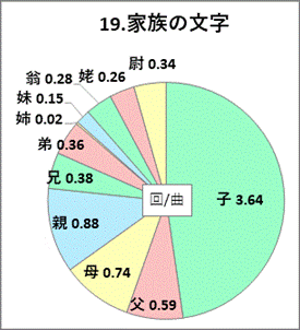家族を表す文字として、「子父母親兄弟姉妹翁姥尉」の11文字について数えてみました。