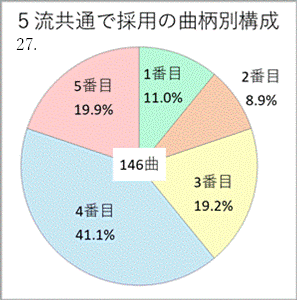 次は、5流で共通採用されている146曲の曲柄構成です。