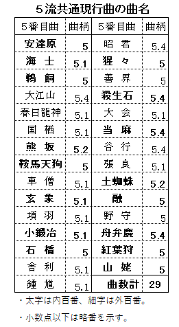 146曲中、内百番は94曲、外百番は52曲となっており、比較的にポピュラーな曲が2/3を占めていたことが分かります。