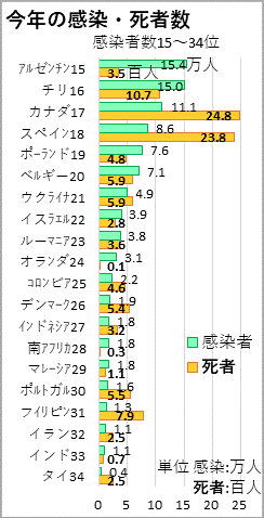 但し、感染率の少ない次の20ヶ国は省略してあります。
