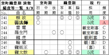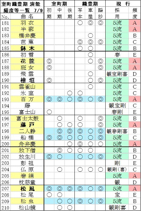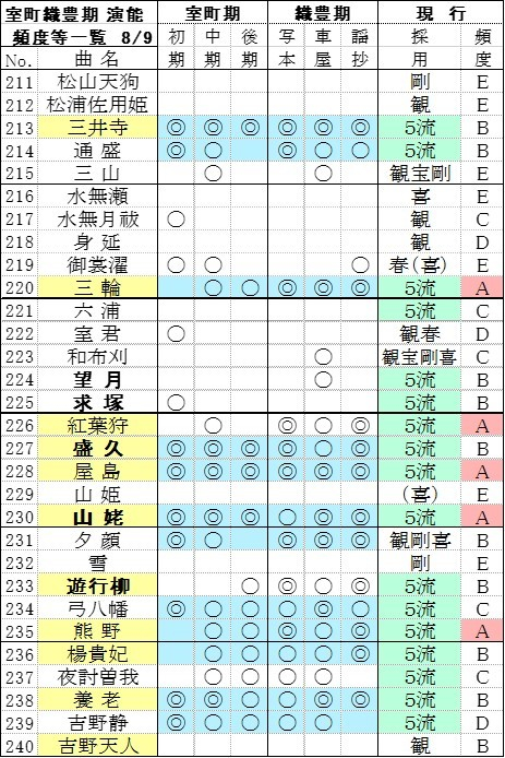 その他 能楽外縁観測 第5部-18 室町織豊期演能等記録の曲別一覧3/3
